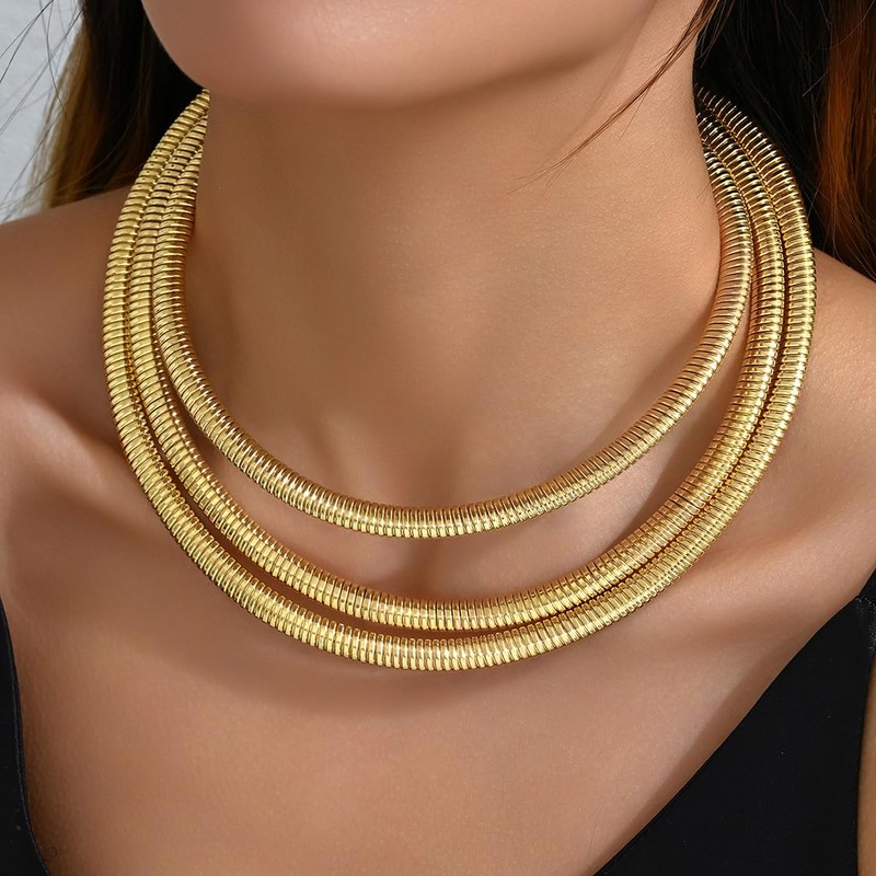 - Exaggerated Style: This chunky gold necklace features a bold design with a flat snake chain pattern. And our unique gold collarbone necklace makes you exotic and fashion.