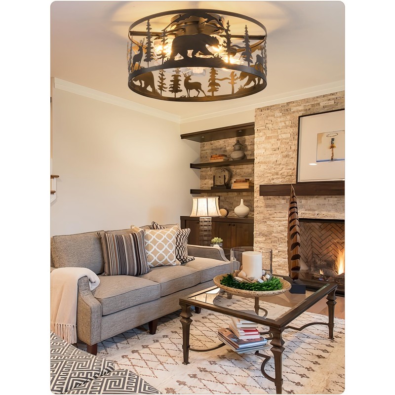 - Farmhouse Rustic Light Fixture Style: This versatile industrial farmhouse Fandelier, perfect as both a chandelier and ceiling fan with light, black caged chandelier shade adopts a sets it apart bear deer pattern design, creating a vintage industrial style and a nostalgic style. The ceiling fan with light is a perfect fit in a variety of small interior spaces, giving chandelier fan a hint of shine.