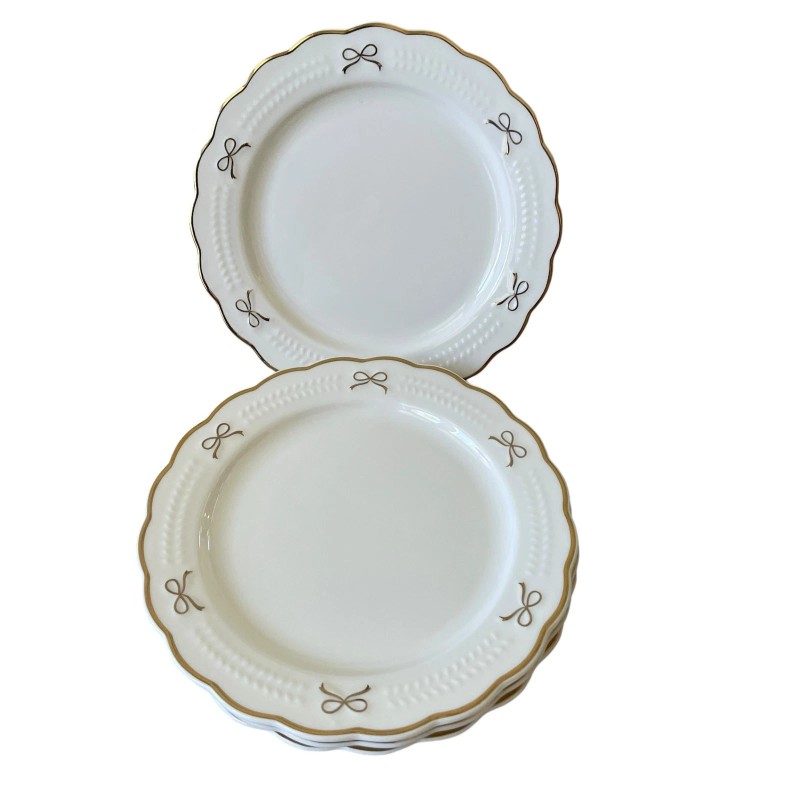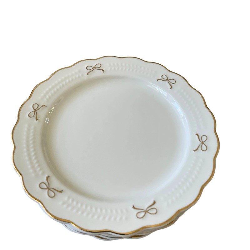 Yedi Yedi GOLD BOW Side Plates Set of 4 Ceramic 8in Holiday Glam White New