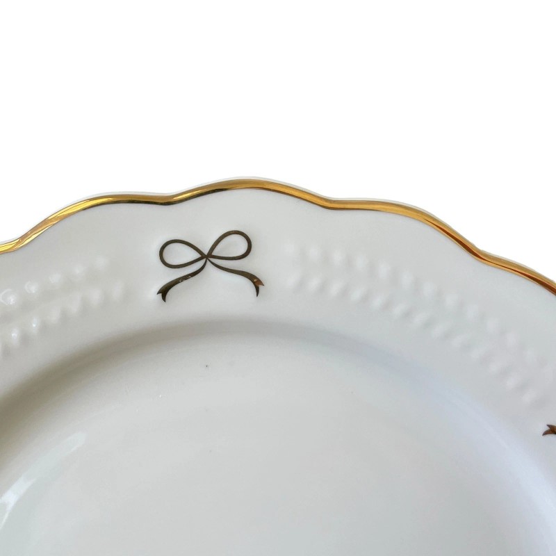 Yedi  Yedi GOLD BOW Side Plates Set of 4 Ceramic 8in Holiday Glam White New