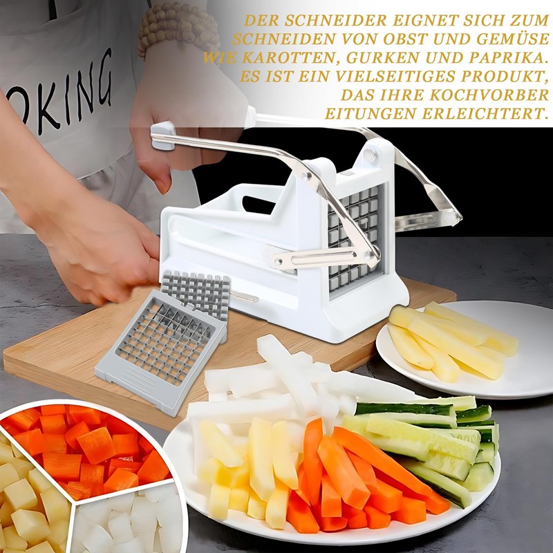 - Easy to use: this chip cutter has a large capacity, and with ergonomically shaped lever handle made of plastic, a soft, non-slip soft-touch zone on the handle makes working with the cube cutter easier, even solid vegetables are cut without pressure points.