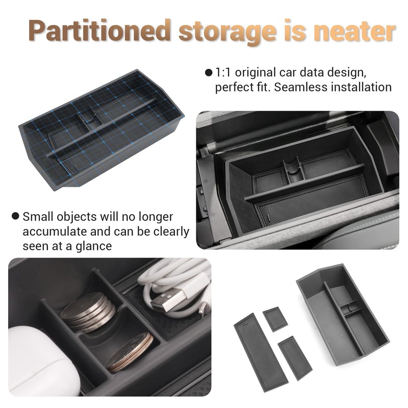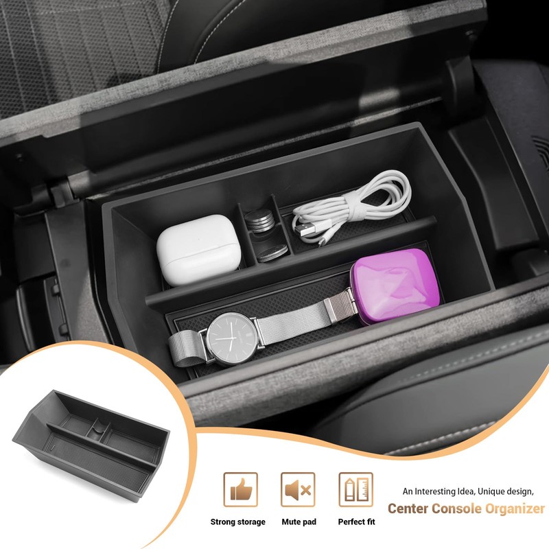 • Optimised storage space: Improve the original car storage box is too deep and there is no layered design problem. Small items such as mobile phones, cards, wallets, coins, pens, keys etc. can be more conveniently organised.