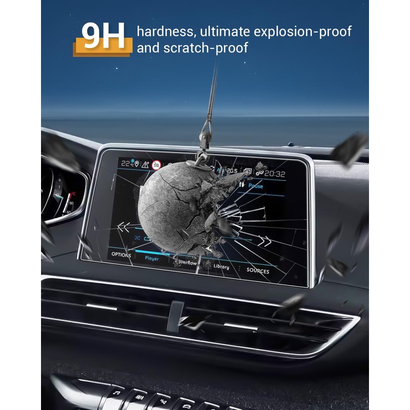 YEE PIN Peugeot 3008 2017 2018 2019 2020 / Peugeot 5008 GT i-Cockpit Schutzfolie Displayschutzfolie Navigation Anti-Scratch Transparent - Gehärtetes Glas Glatte Berührung