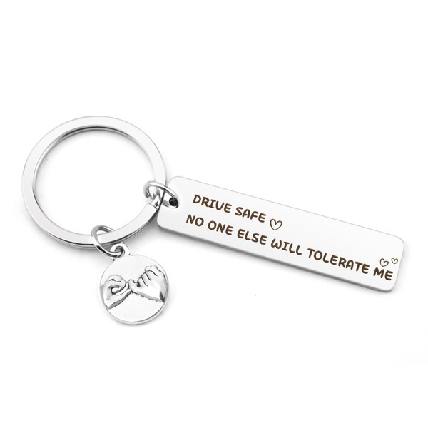 - Drive Safe Keyring: This is a cute keychain for boyfriend. Simple and modern design, warm and meaningful text, cute and funny patterns, make it a unique keychain gift for boyfriend/girlfriend, hang it on car keys, this keychain can accompany your boyfriend/girlfriend for a long time.