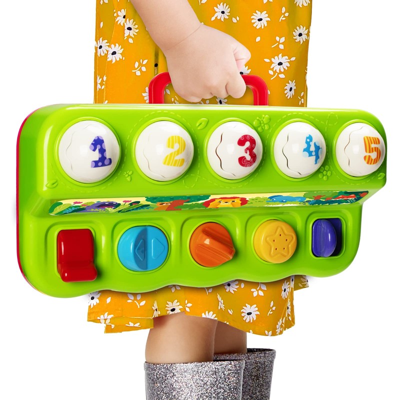 - Durable & portable - The Interactive popup animal toy is well built and definitely durable, not easily damaged. With an easy-carry handle, perfect for take-along play. Bring this pop-up play toy on the go!