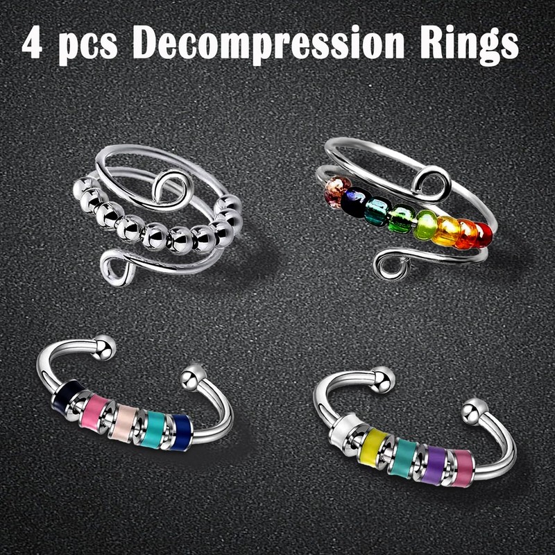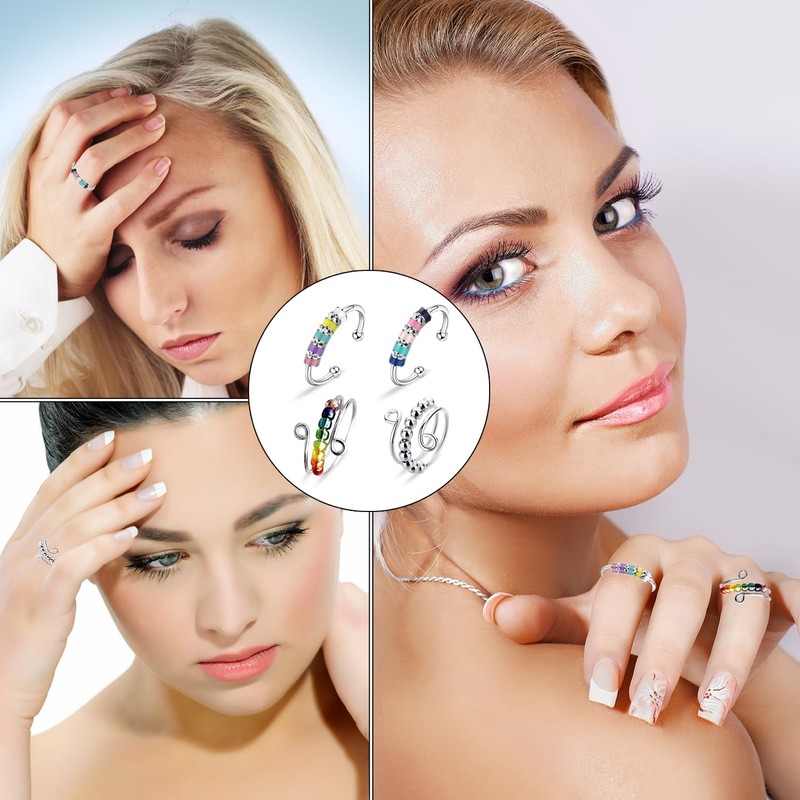 - 💫 Package Content: This set of products has 4 anxiety rotating rings of different styles, namely beaded fingertip rings. And have 2 styles are make of colorful enamel beads to design, Each ring is an eye-catching design with different style characteristics. In addition to being used as charming rings, you can also use easy ropes to string them together as necklaces, which will make your neck more beautiful!
