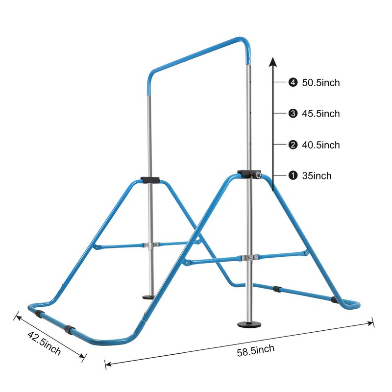 YEEGO DIRECT Gymnastic Bars for Kids,Folding Horizontal Kip Bars Height Adjustable Horizontal Monkey Bars Gymnastics Bars for Home Ages 8-12 Blue