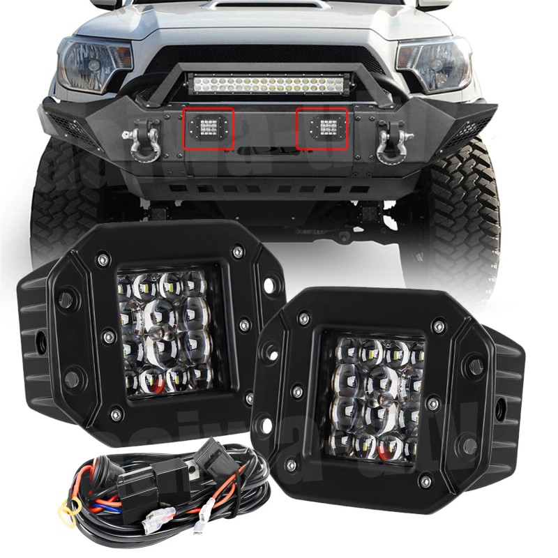 yeego_offroad Pair LED Work Lights Flush Mount Flood Cube Pods Backup Reverse Offroad + Wiring