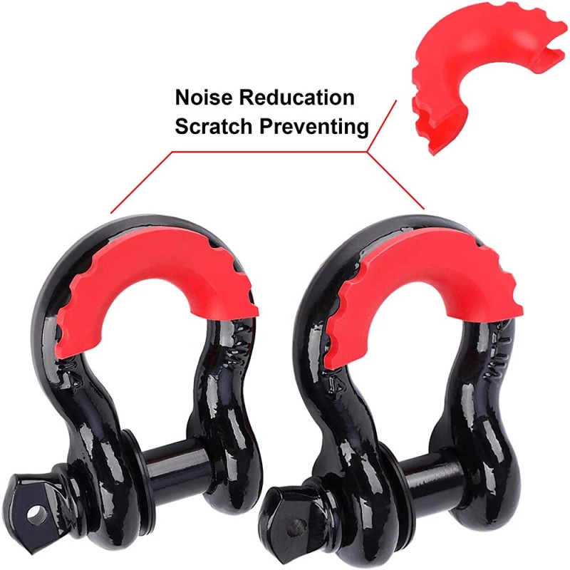 2PCS 3/4" D-Ring Black Isolators Washer Clevis Kit W/ Red Bow Shackles 4.75 Ton