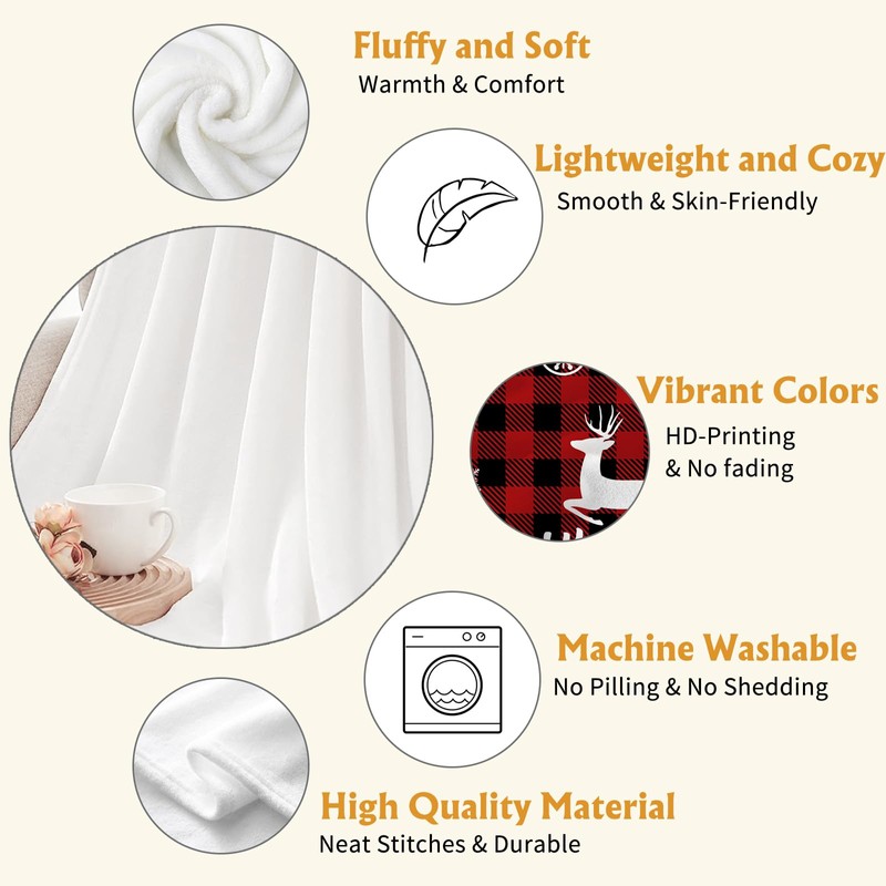 - 【Unique Design】: The Christmas fleece throw blanket is designed with reindeer snowflake and trees elements,which is perfect for Winter Holiday theme home decorations.The Christmas decorative blanket can help you change Christmas home decorations quickly and refresh your room. The red plaid christmas throw blanket is also your perfect partner for vacation, camp and travel.One sided print with vivid colors and the back is pure white with no pattern!