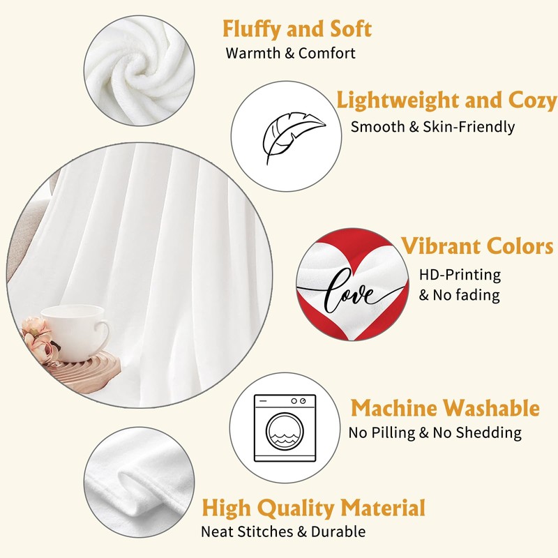 Printing: The Valentines theme throw blanket use hot-press printing technology to fully integrate the ink into the inner layer of the fabric.