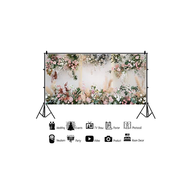 Yeele 15x8ft Wedding Backdrop for Photography Pink White Romantic Rose Flowers Curtain Background Wedding Ceremony Banner Bridal Shower Birthday Party Decoration Supplies Photo Booth Props