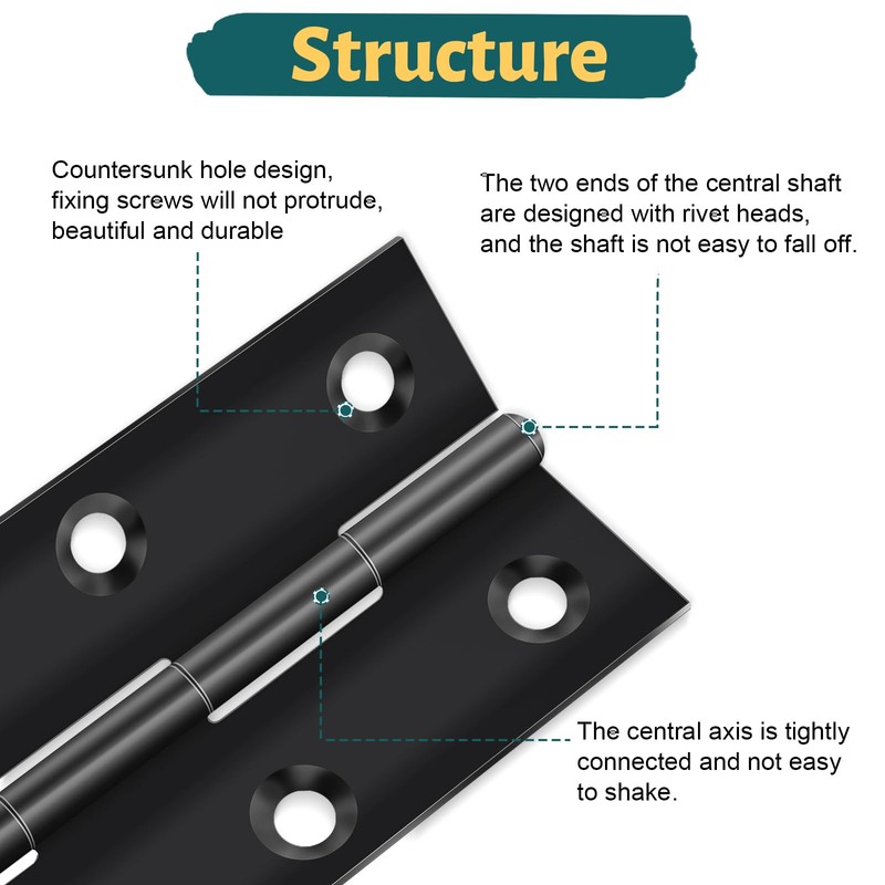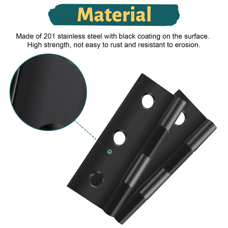 - 【Hinge Material】Hinges small are made of 201 stainless steel with black coating on the surface. High strength, not easy to rust and resistant to erosion.