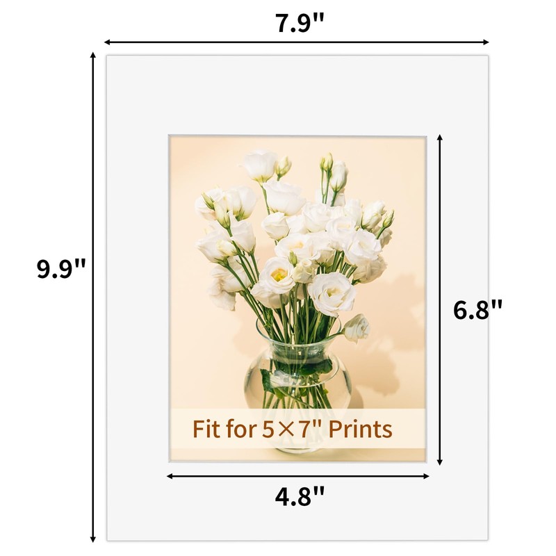- For 5 x 7" Pictures: Photo mats 8x10 for 5x7 inch; outer size: 8 x 10 inch, inner size: 4.8 x 6.8 inch; our picture frame mats are suitable for 5x7 inch pictures