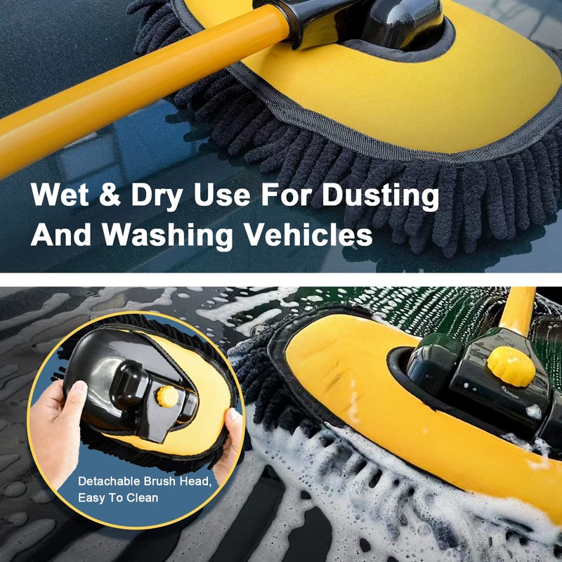 - 90° ADJUSTABLE MOP HEAD: Car brush features a 90° adjustable head that can also be locked in place, making it easy to clean hard-to-reach areas. This design saves time and effort, boosting your cleaning efficiency so you can enjoy a spotless vehicle with less hassle