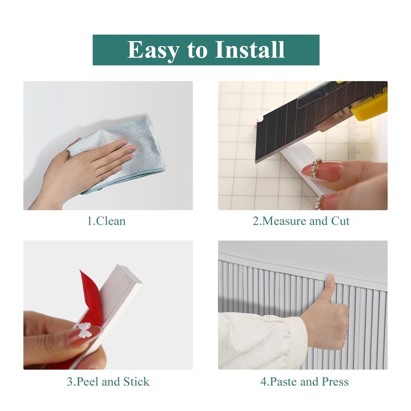 - Easy to Use:1Measure 2Cut 3 Peel 4️Stick.Simply cut the molding trim to the desired length, peel off the backing, and stick it to the surface.For removal, use a hairdryer to soften the adhesive, ensuring no damage to the surface.