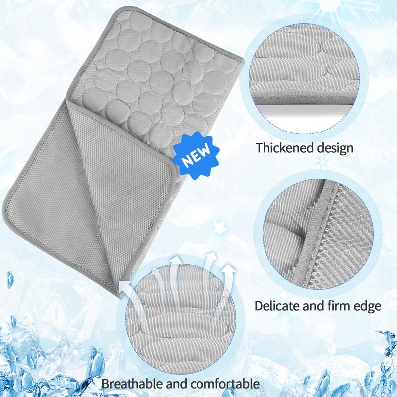 • Material: the cooling pad is made of cooling fabric on one side and mesh fabric on the other. Soft and breathable, cool and comfortable, with reinforced edges, wear-resistant and bite-resistant.