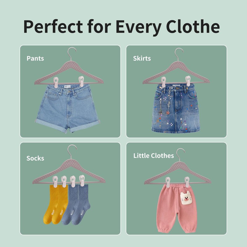 - ✅ Perfect Fit for Plastic Hangers: Designed to clip securely onto plastic hangers, these hanger clips slide smoothly and stay in place—perfect for organizing pants, skirts, baby clothes, and more.