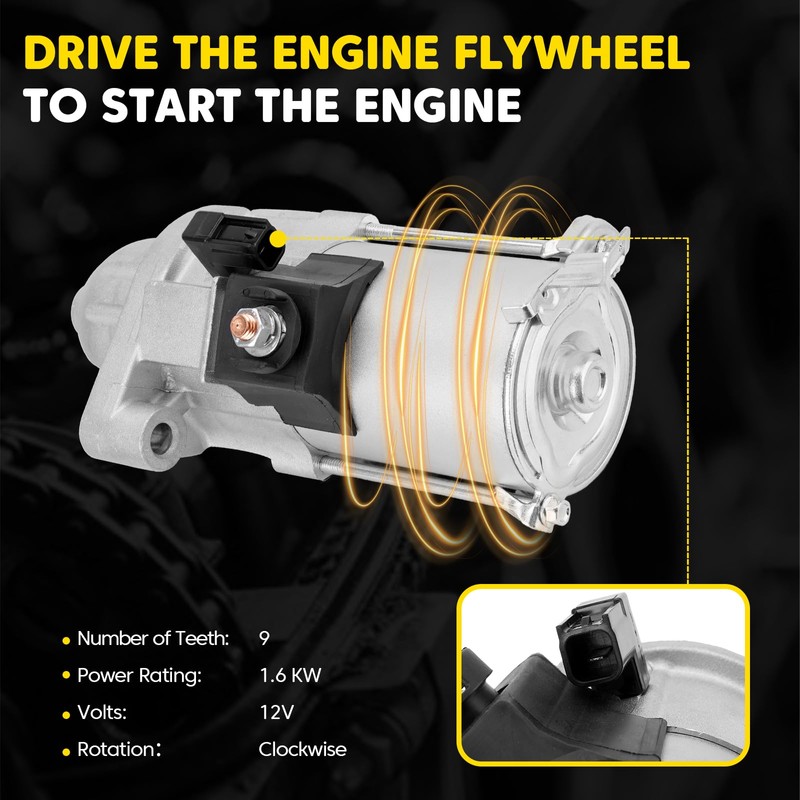 YEHERIT 17960N Starter Motor Compatible with 2006-2012 Honda Accord 2006-2011 Honda Civic 2006-2014 Acura TSX 2006-2008 CSX 2007-2011 CR-V 2007-2011 Element 2.0/2.4L 12V 1.6KW 9-Teeth Clockwise