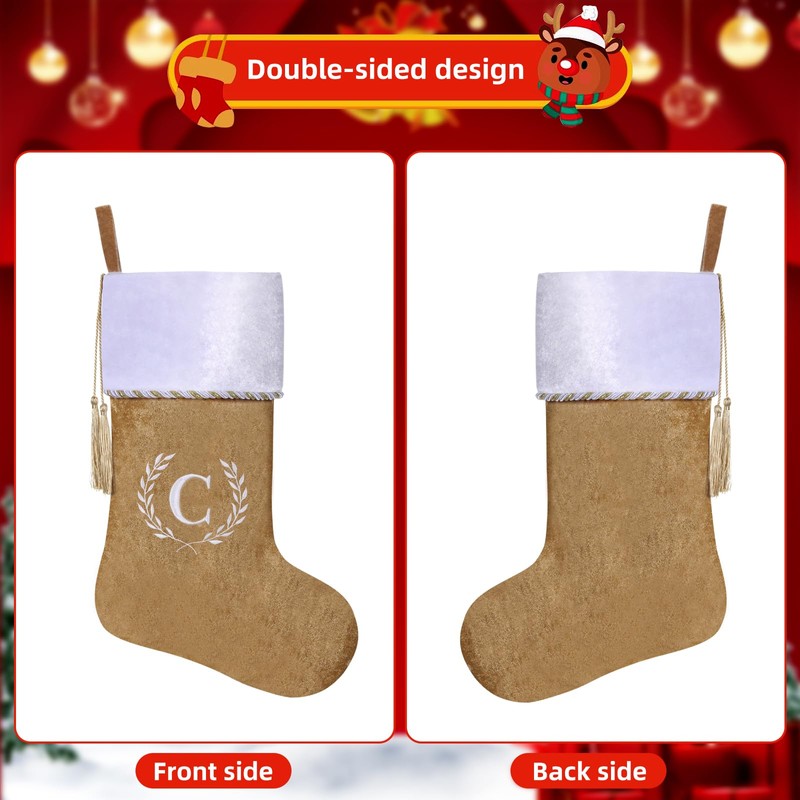 - -PERSONALIZED CHRISTMAS GIFTS: This beautifully embroidered gold and white Christmas stocking, with its initials, is not only a great holiday decoration, but also the perfect Christmas gift to give to friends, family, colleagues, and elders.