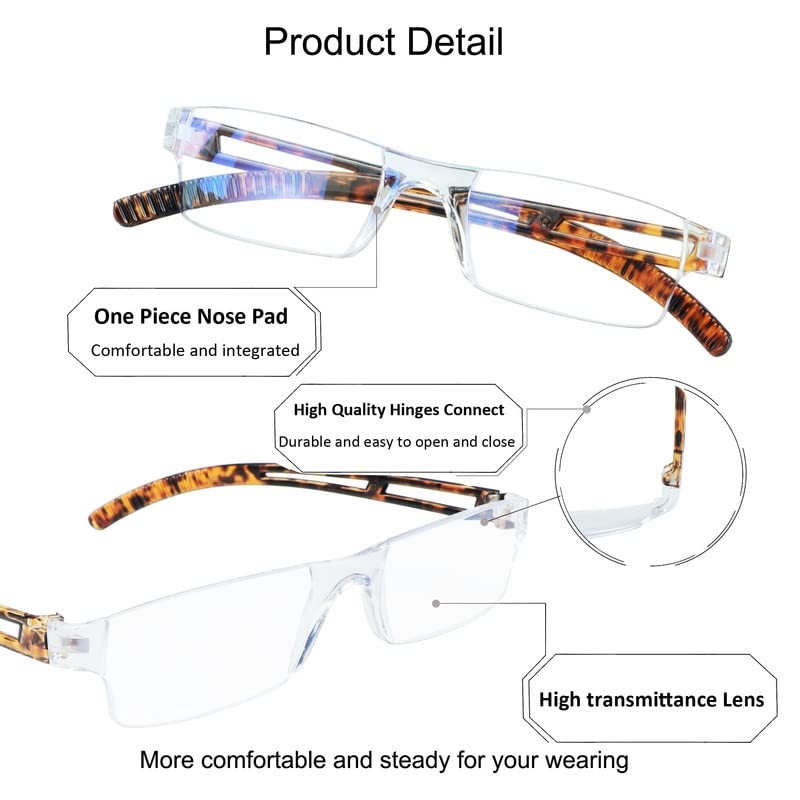 8 pairs in the packaging, For the car, bedroom, office and other places, anytime, anywhere to read. Each pair glasses is carefully selected to ensure quality.