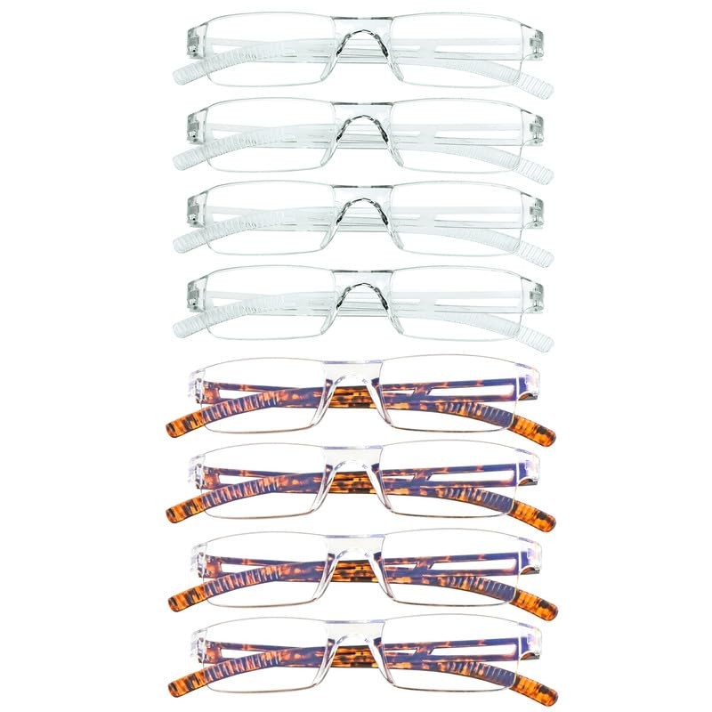 YEIN Reading Glasses 8 Pairs Blue Ligth Blocking Reading Glasses for Men and Women Fashion Square Frame Readers (4 Clear+4 Tortoise,+2.00)