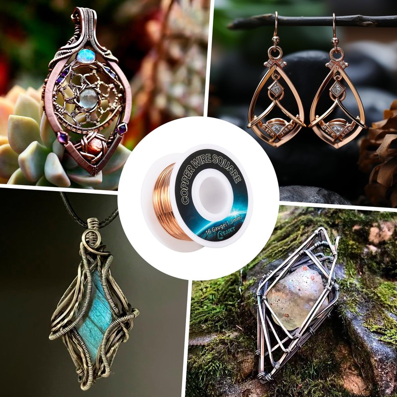 YEJJET 16 Gauge 99.9% Pure Square Copper Wire, Dead Soft Copper Wire for Jewelry Making 30 Ft