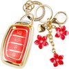 Yekoubo Red TPU Key Fob Cover with Sakura Flower Keychain Compatible with Hyundai Tucson Santa Fe Santa Fe Sport Sonata Sonata Sport Elantra GT Elantra Ioniq 4-Button Smart Key for Women