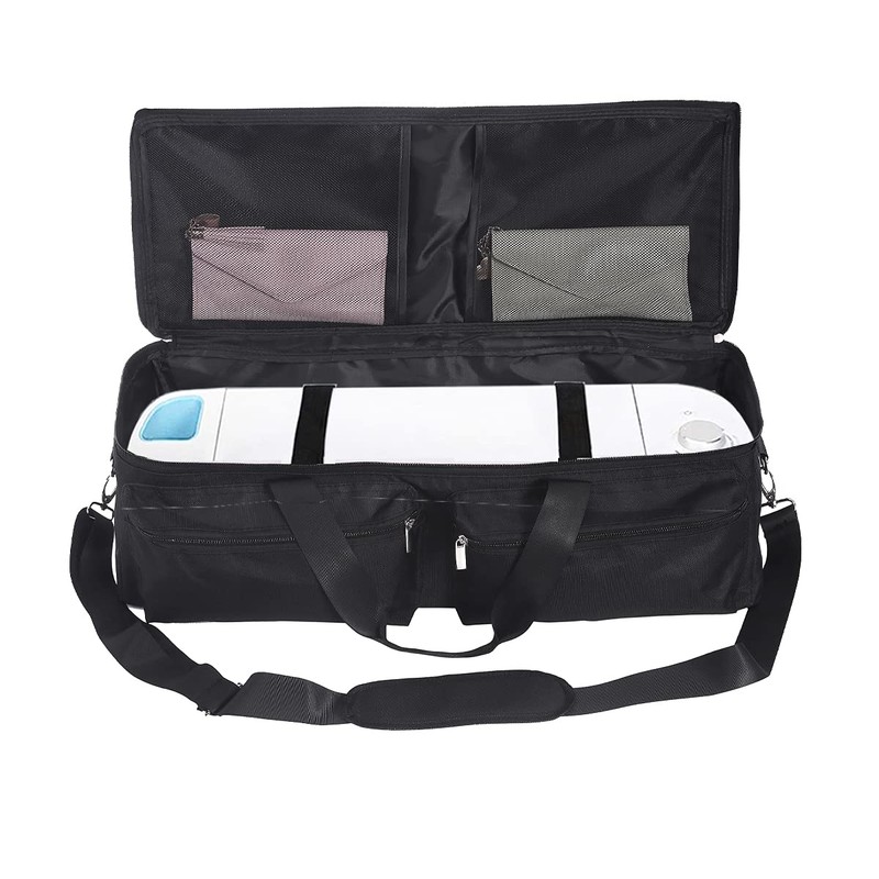 - LARGE CAPACITY:23.5 " x 9 " x 7.5 ". A main compartment (with adhesive straps) to secure your die cut machine. 2 front zipper pockets and 2 inner mesh pockets for holding tool sets. Equipment with a extra Canvas cover bag for keep out dust.