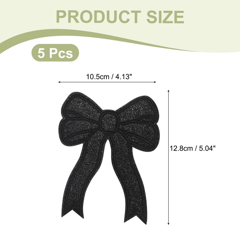 - PACKAGE SPEC - Bow Iron On Patches Size: 10.5 x 12.8 cm / 4.13 x 5.04 Inch (W x L); Color: Black; Material: Polyester; Packing List: 5 Pack x Sew On Bow Patches