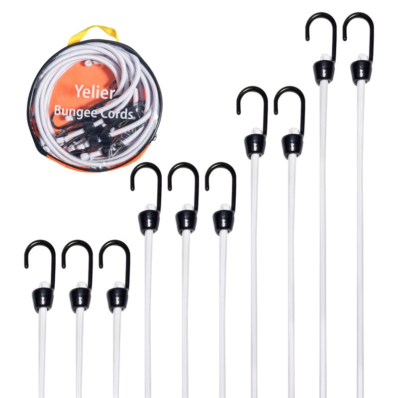 YELIER Bungee Cords with Hooks. (White, Nylon, 5/16" * 10pcs), Heavy Duty Bungee Cords with Hooks, Multifunctional Bungee Cord with Hooks. Nylon Silk.