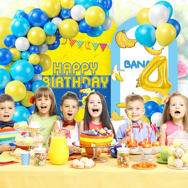 Yellow Cartoon Balloons Arch Kit, Cartoon Banana Theme 4th Birthday Party Decorations for Boys and Girls Baby Shower Birthday Party Balloons Decoration Supplies