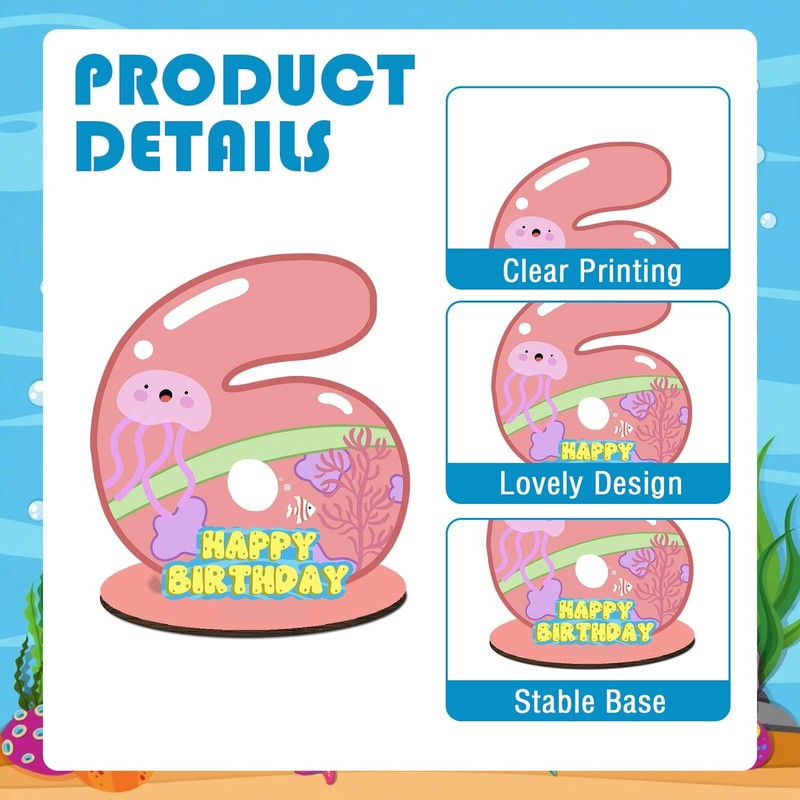 - Ideal Display Size: The cartoon character number '6' measures approx. 6.5" x 8.5" (16.5cm x 21.5cm), mounted on a sturdy 6" (15cm) diameter base. This compact yet prominent size is perfect for tabletop display, ensuring it captures attention without overwhelming the party space