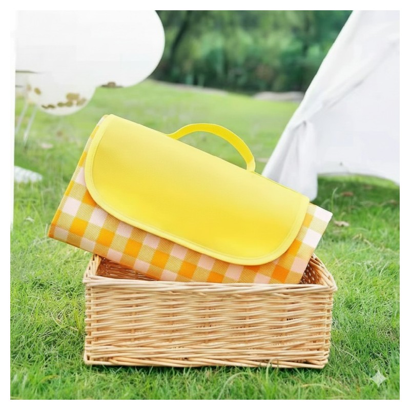 ☀️ Unfold instant happiness with our vibrant Yellow Check Foldable Picnic Mat, perfect for brightening any outdoor escape.