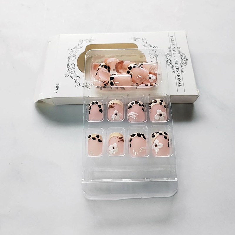 - Packaging includes:You will receive 24 french tip leopard print nails, 24 jelly glue, 1 small crystal stick, alcohol bag, nail file, no additional tools required