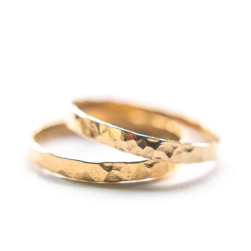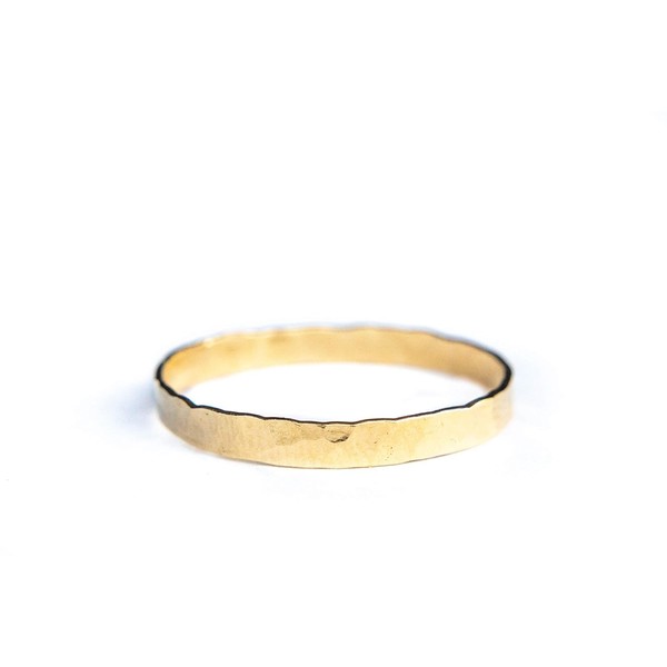 Yellow Gold Filled Hammered Stacking Ring 2mm Band Gift for Women - Size 8