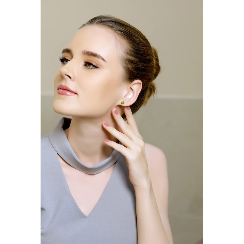 - FEATURE - These fine earrings display a pair of round-cut peridot studs. The peridot gemstones measure 6mm in diameter. These delicate studs will make a great fashion accessory for your every day or evening wardrobe! They can be purchased as earrings for women or earrings for teens.
