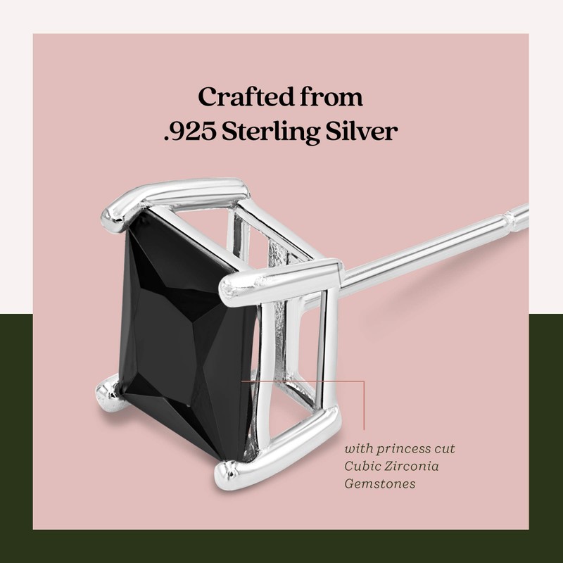 - This radiant pair of Princess Cut Stud Earrings is delicately crafted using fine AAA Black Cubic Zirconia Gems and Black Rhodium-plated 925 sterling silver that will definitely add a vintage touch to your daily style.