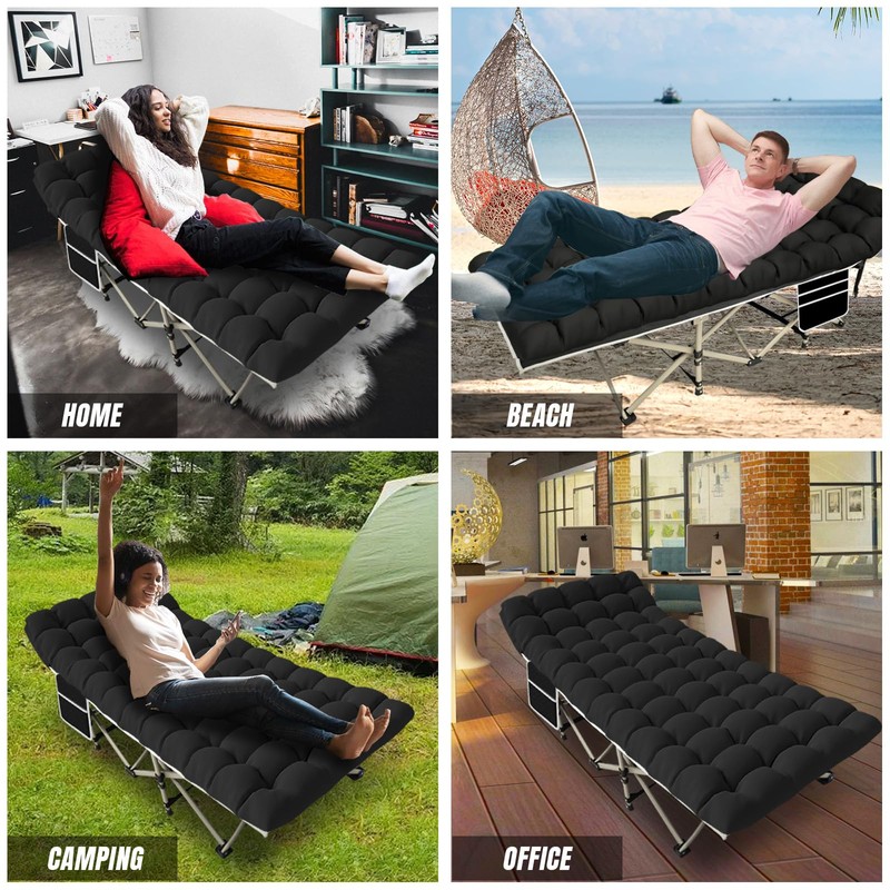 - Widely ApplicationCot has a large built-in side pocket to store your phone,glasses,toys and more.Ideal for daily or travel use for families with adults and children.Including outdoor camping,office napping, travel,beach,patio,offering relaxation anytime, anywhere.