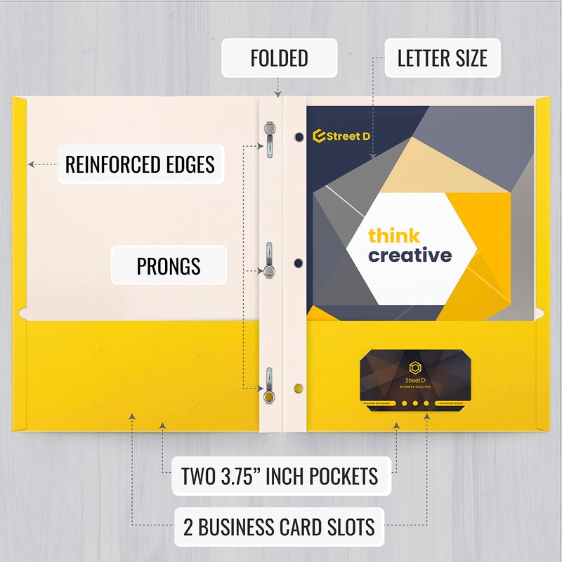 - 50-PACK: Yellow matte finish paper folders with 3.75" pockets and prongs. Easily holds 100 sheets (50/pocket) of letter size (8.5" x 11") paper/documents. But can even handle more.