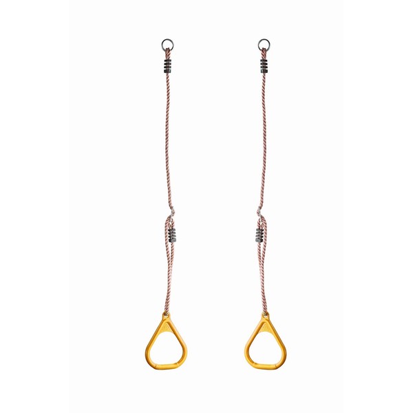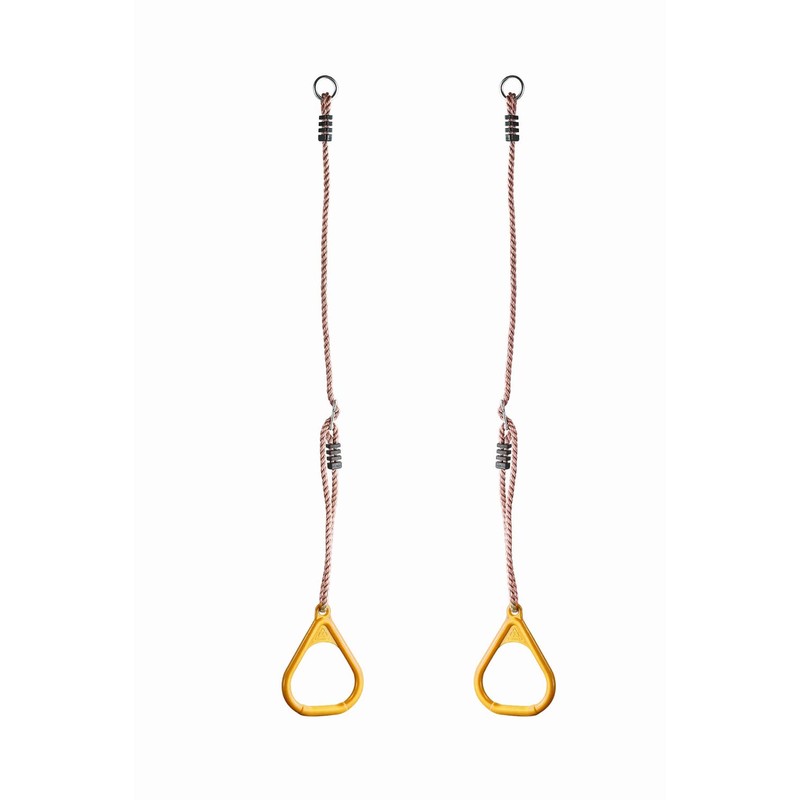 - Injection moulded yellow PP plastic gymnastics rings with adjustable ropes