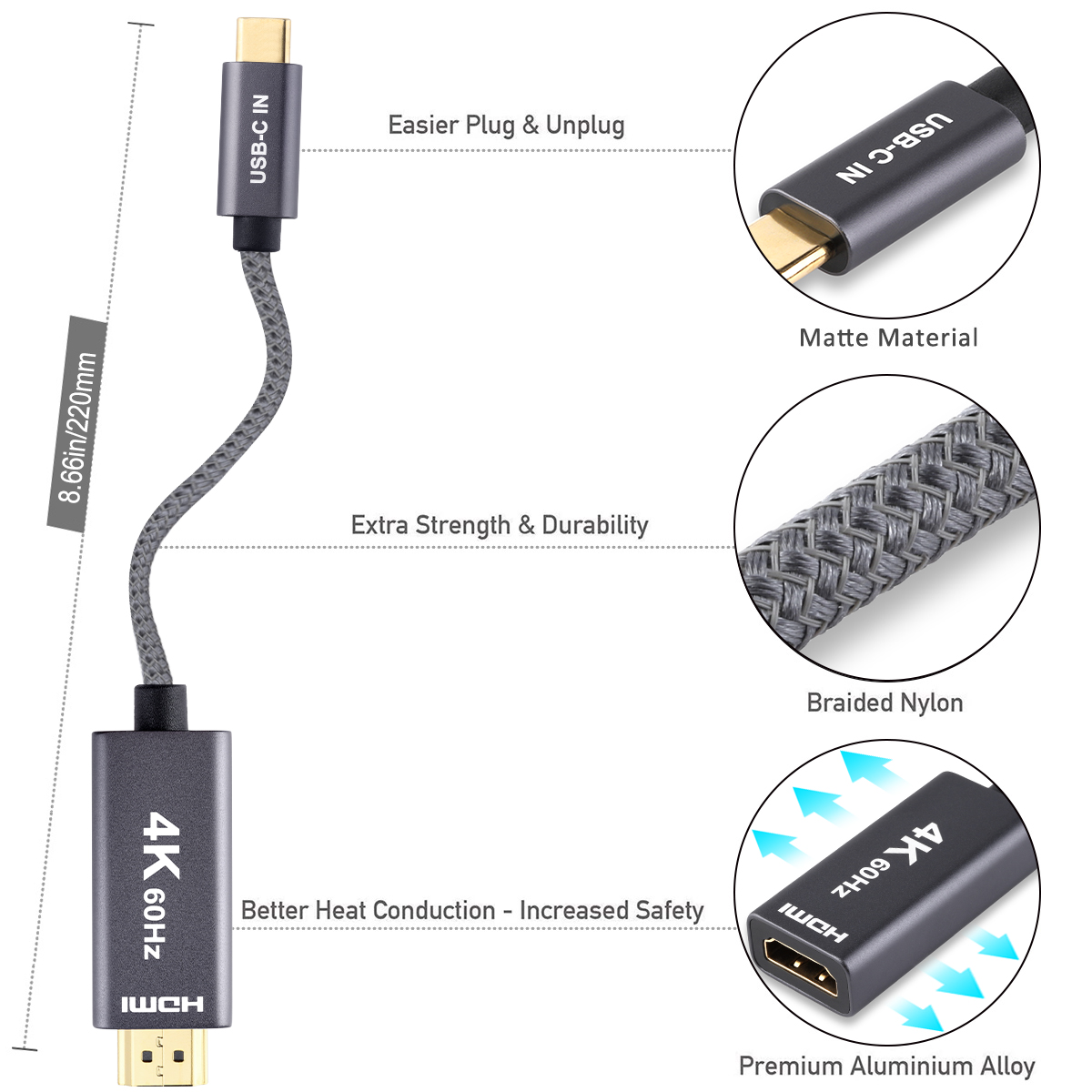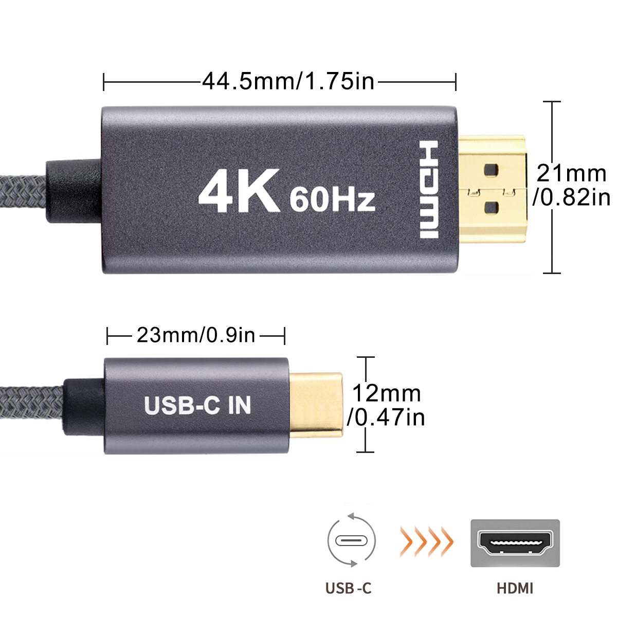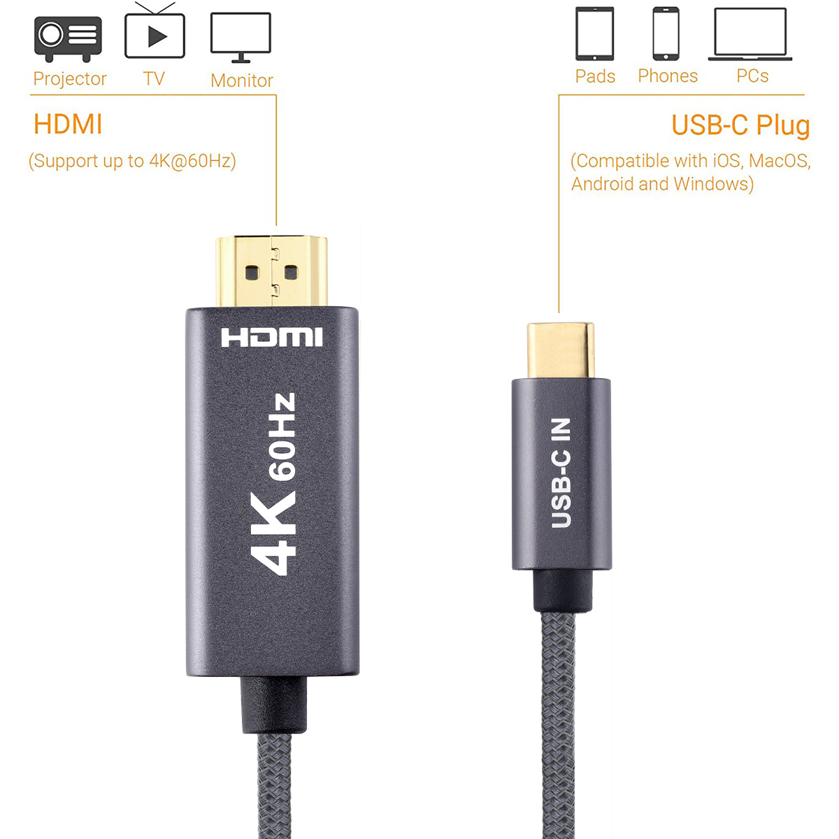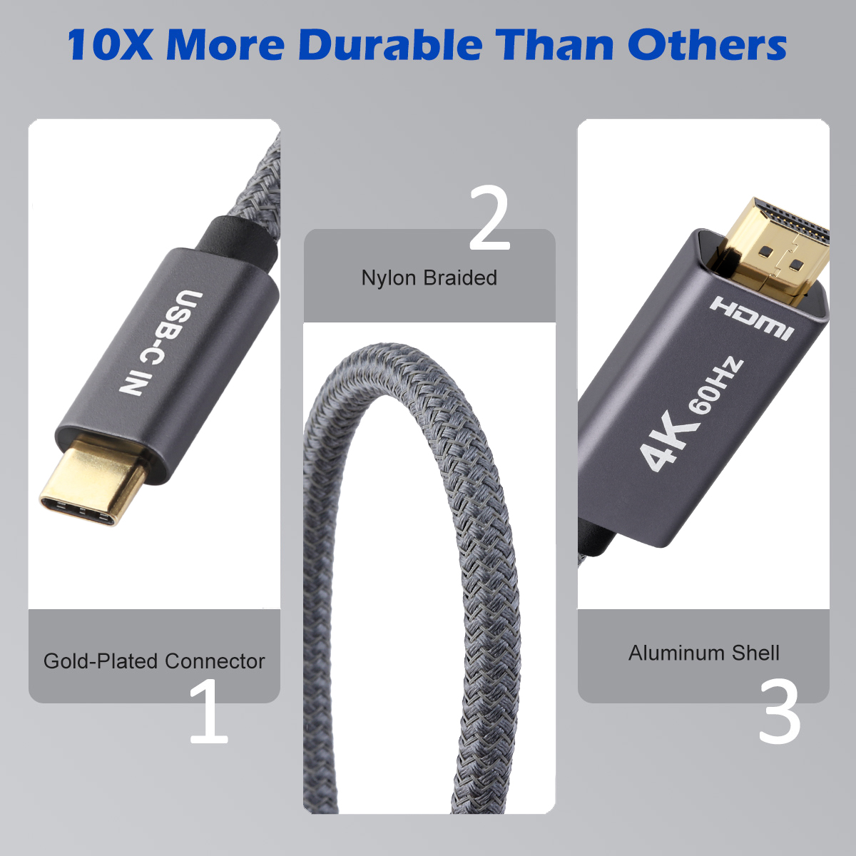 6ft Braided USB C to HDMI Adapter (4K@60Hz)