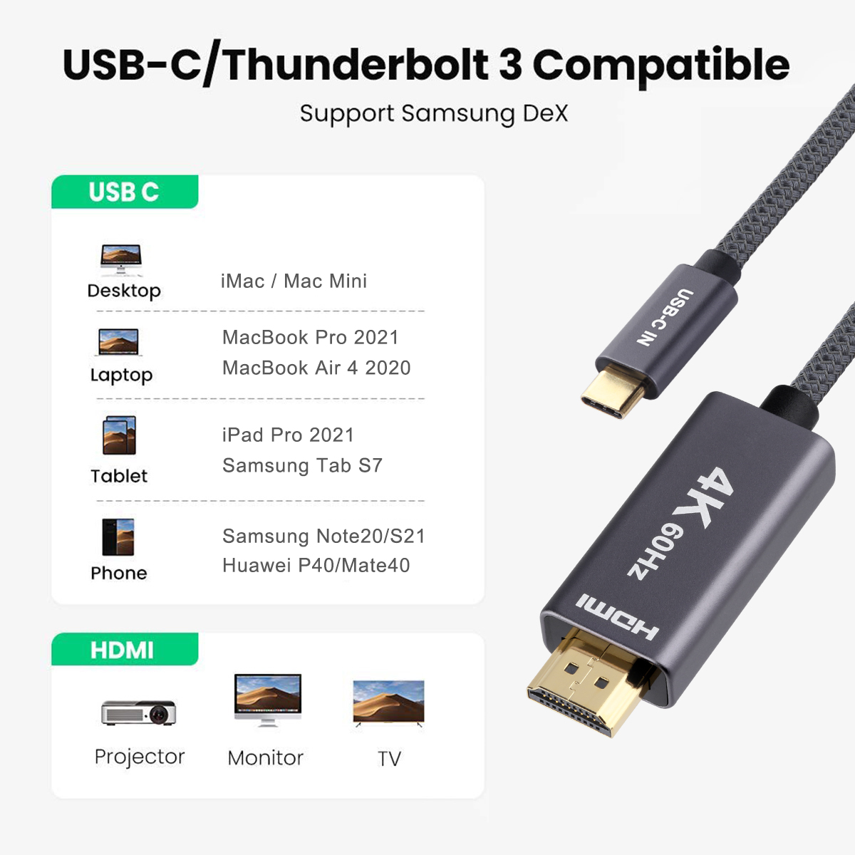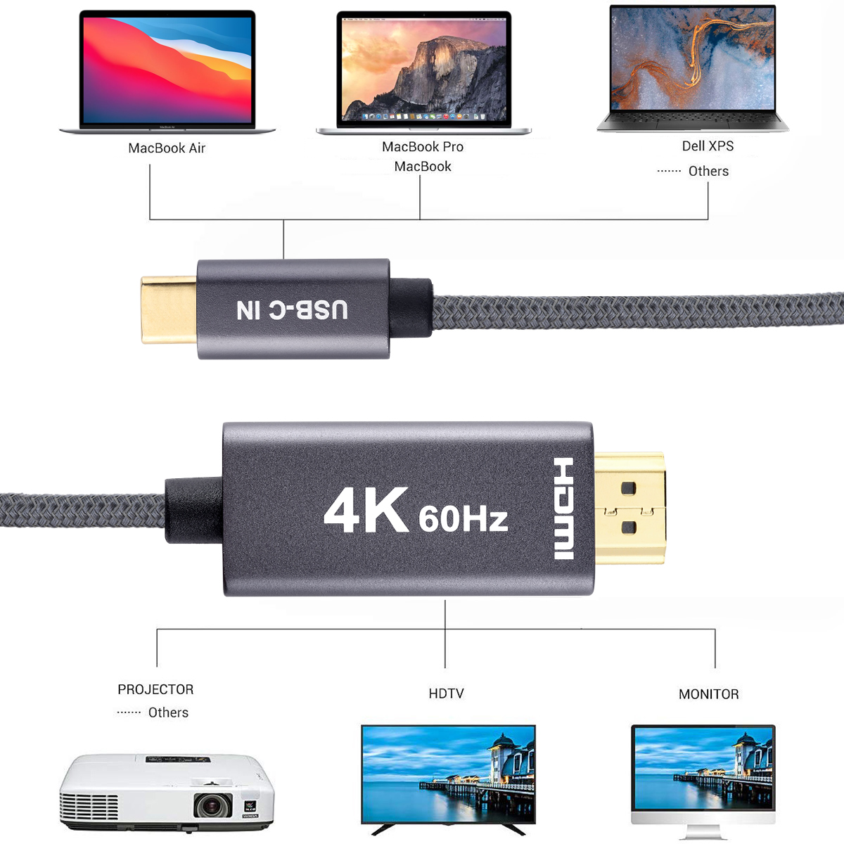 Yellow-Price USB-C Type-C to HDMI HDTV Cable Adapter 4K Audio Video AV 60Hz 18Gbps Mac PC 6FT