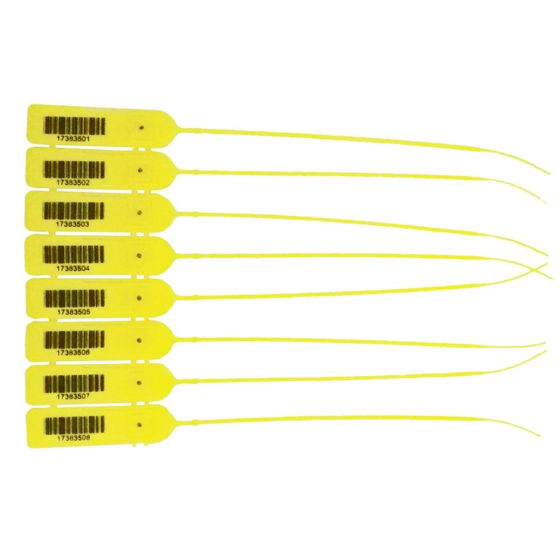 Yellow Pull-Tight Barcode Security Seals 8'', 100 Seals
