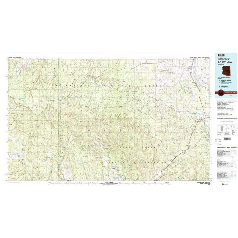 - USGS topographic map of Show Low, AZ, at 1:100000 scale. Heavier material. Waterproof. Tear-resistant. Foldable. Perfect for the outdoors.