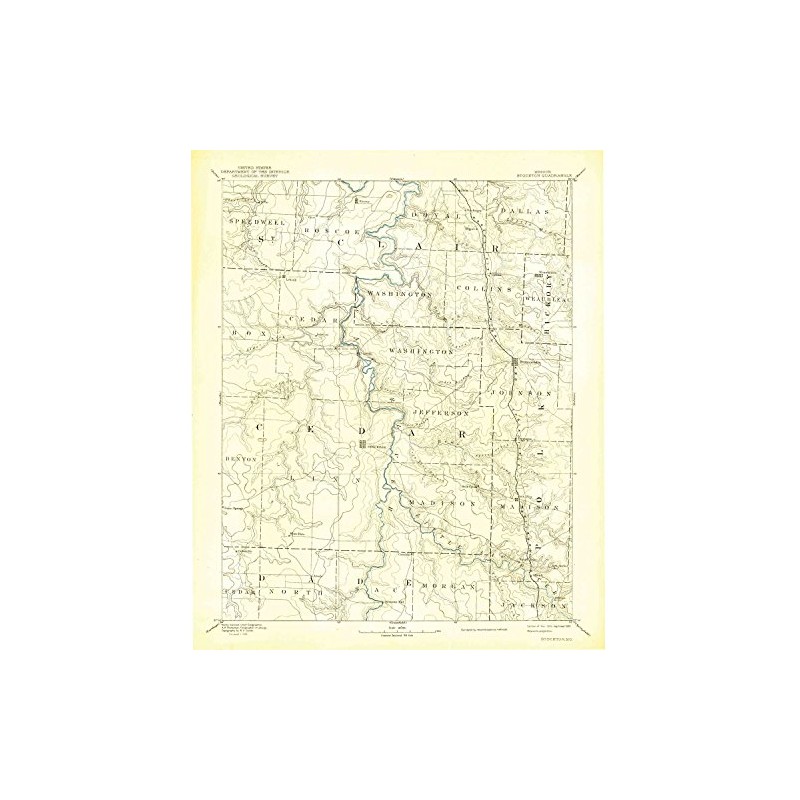 YellowMaps Stockton MO topo map, 1:125000 Scale, 30 X 30 Minute, Historical, 1886, Updated 1939, 19.8 x 16.6 in - Polypropylene