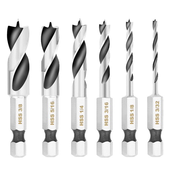YENJO 6 Pcs HSS Stubby Drill Bits Set for Wood, Hex Shank High Speed Steel Woodworking Drill for for Quick Change Chucks and Drives