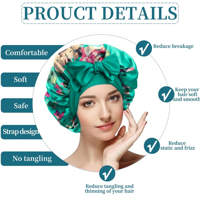 - Breathable Satin Fabric: Made of hypoallergenic satin, smooth and soft, reduces friction and split ends, and the temperature regulating fibers maintain scalp moisture balance.