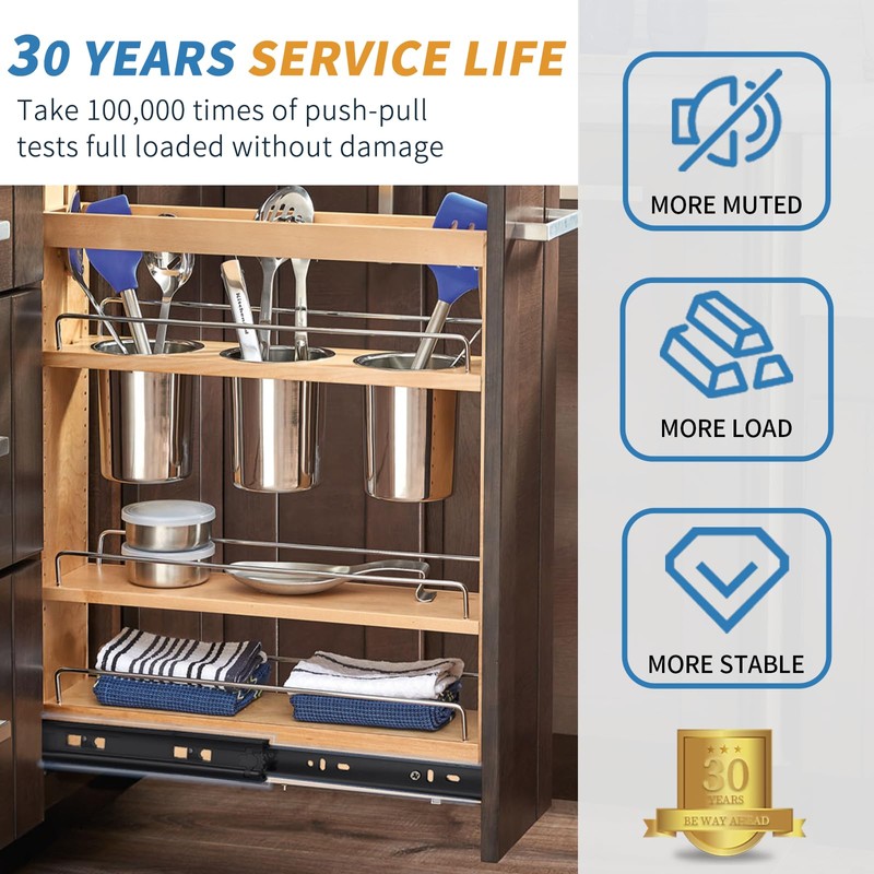- 【MAXIMUM LOAD CAPACITY: 45KG 】 Made of 1.2mm high-density thickened steel, better bearing capacity,it will keep your drawers stable and safe even carrying up to 45kg heavy weight items,which take 100,000 times of push-pull tests full loaded without damage,the service life of the slide rail could be 30 years at least.