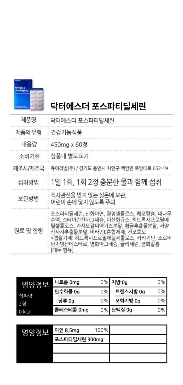 여에스더 포스파티딜세린 PS 닥터에스더 60캡슐 x 2박스
